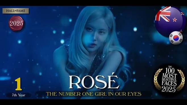 미국 영화 사이트 TC 캔들러(TC Candler)는 28일(현지시간) 공식 유튜브 채널을 통해 '2025 세계에서 가장 아름다운 얼굴 100' 순위를 공개했다. 이 가운데 로제는 여성 부문에서 1위에 올랐다.
