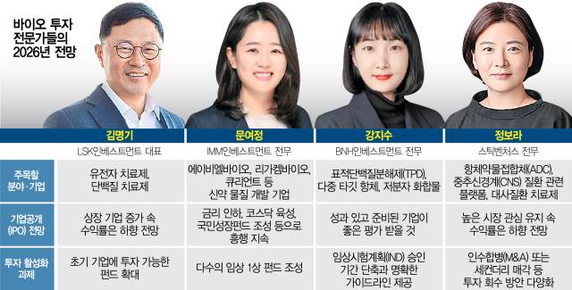 바이오 투자 전문가들은 올해 유망한 분야로 유전자 치료제와 표적단백질분해제(TPD) 등 차세대 모달리티(치료법)를 꼽았다. 지난해 총 공모액이 1조 원에 육박했을 정도로 열풍이 불었던 바이오 기업공개(IPO) 시장은 올해 인기를 이어가겠지만 주가 수익률에서는 ‘옥석 가리기’가 나타날 것이라는 전망이 우세했다. 이들은 이재명 정부가 국민성장펀드로 조성한 11조 6000억 원을 바이오·백신에 투자하겠다는 정책을 긍정적으로 평가하면서, 초기 기업에 대한 투자를 늘려 신약 개발 생태계 기반을 단단히 해야 한다고 조언했다.