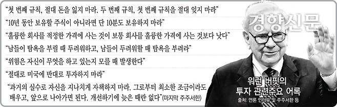 버핏은 미국 주식시장에 향한 믿음이 큰 것으로도 유명하다. 2008년 금융위기, 2020년 코로나 팬데믹 등 미국 증시가 크게 흔들릴 때도 ‘미국 주식을 사야한다’며 투자자에게 미국에 대한 장기투자를 강조해왔다.