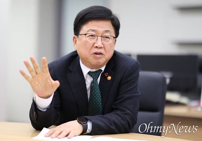| ▲ 2025년 12월 24일 최교진 교육부 장관이 정부세종청사 집무실에서 <오마이뉴스>와 만나 교원 정치기본권 확대와 보장, 민주시민교육과 역사교육 강화 등 교육 정책에 대해 이야기를 나눴다. |