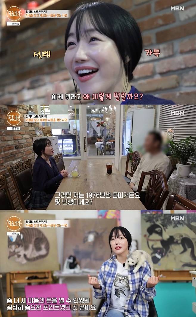 낸시랭은 소개팅 후 "특별한 하루인 것 같다"고 소감을 전하며 "제가 사람들을 만나는 게 두렵고 트라우마 있었는데 이번 계기로 제 마음의 문을 열 수 있던 포인트였다. 마음 여는 거 자체가 큰 변화다"라고 강조했다.