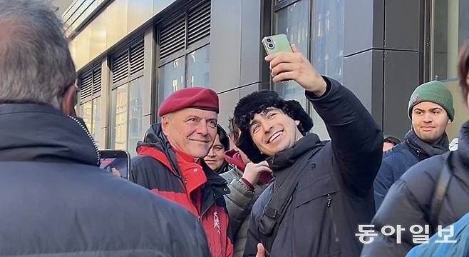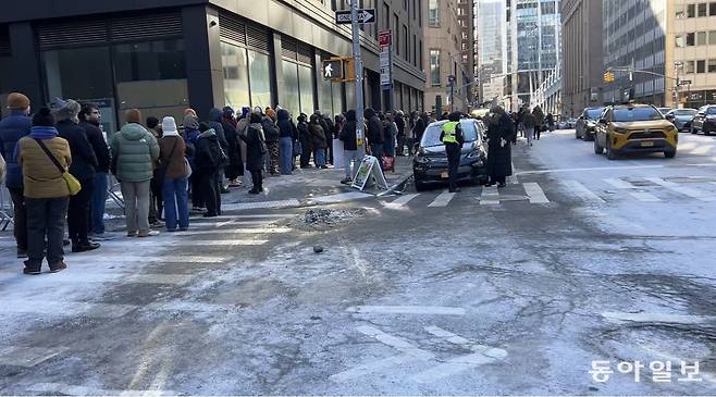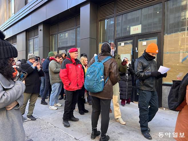 이날 줄을 선 이들을 취재하다가 만난 뜻밖의 신스틸러도 있었습니다. 바로 맘다니 시장과 함께 뉴욕 시장 선거에 출마했던 공화당 후보 커티스 슬리와였습니다. 슬리와 전 후보는 항상 자신의 트레이드마크인 빨간 베레모를 쓰고 다니는데, 이날도 어김없이 베레모를 쓴 채 홀로 평범한 시민들 사이에 섞여 입장 대기줄에 서 있었습니다. 그를 알아본 시민들이 깜짝 놀라 다가가 주먹인사를 하고 기념촬영 부탁을 하자 흔쾌히 응해주기도 했고요.