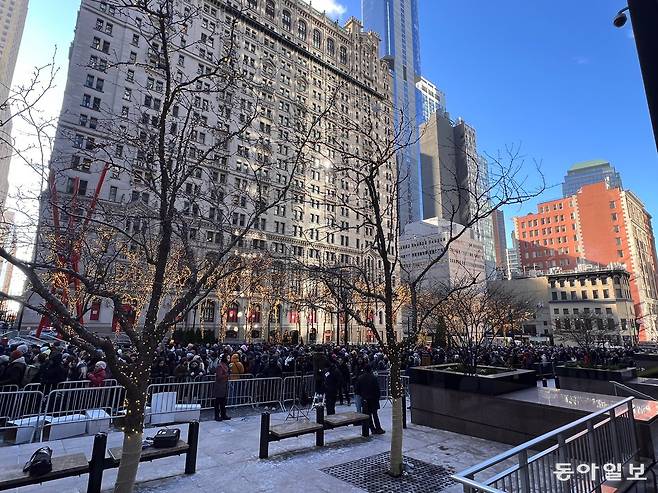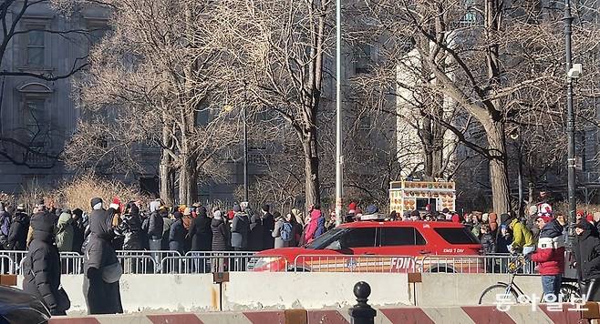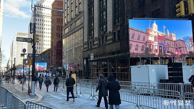 이날 취임식과 취임식 단관 파티 행사는 이토록 수많은 사람들이 몰려든 역사적 현장이었습니다. 그런데 아뿔사, 막상 행사가 시작되자 생각지도 못했던 장면이 펼쳐졌어요. 블록마다 초대형 전광판이 설치돼 시민들을 맞을 준비를 마치고, 대형 스피커에서는 ‘New York State of Mind’ 음악이 흘러나오며 뉴요커들의 감성을 한껏 끌어올리고 있었는데 정작 그 앞에 관객들이 없었던 겁니다.