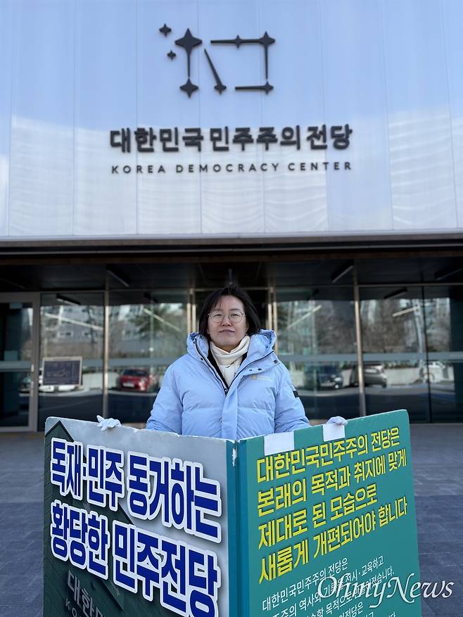 | ▲ 진보당 정혜경 국회의원, 2일 대한민국민주주의전당 앞 1인시위. |