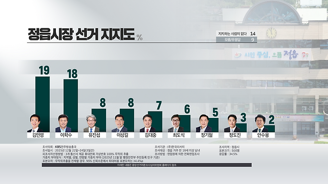 ■ 김민영 19%, 이학수 18%…정읍시장 선거도 오차 범위 내 접전