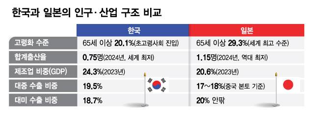 또한 급속한 고령화에 직면한 양국에 '실버경제'는 협력의 프런티어다. 돌봄 로봇, 헬스케어 AI 등 고령화 문제 해결 기술을 공동 개발하고, 구미나 중국에 앞서 과제 해결 모델을 세계 시장에서 수출 산업화하는 것은 양국에 남겨진 얼마 안 되는 성장 영역이다.