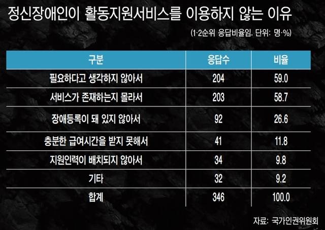 이 같은 ‘신청주의’로 인해 사회적 약자인 장애인과 그 가족의 경우 서비스 자체를 잘 알지 못해 혜택을 받지 못하는 경우가 많은 것으로 나타났다.