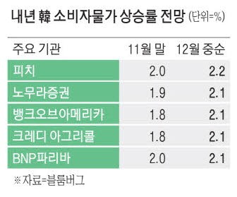4개 기관(한국은행, 한국개발연구원, 현대경제연구원, LG경제연구원) 모두 내년 민간소비 증가율을 1.6~1.8%로 GDP 증가율 대비 소폭 아래로 내다봤습니다. 반면 이들 기관 대다수는 설비투자 및 건설투자 증가율을 2%대로 전망했습니다.