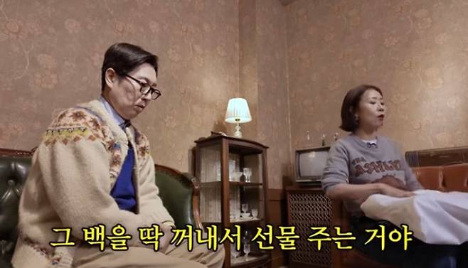 이어 김영철은 정선희를 위해 준비한 백 선물을 건넸고 정선희는 깜짝 놀라는 반응을 보였다. 김영철은 “그때 누나가 좋아하는 모습이 너무 좋았고 오늘 출연료 상관없이 크리스마스 선물 겸 해서 사왔다. 색깔 뭘 좋아할 줄 몰라서 두 개 사왔다”라고 말했다. 정선희는 “설레게 왜 그러냐. 두 개 중에 하나 반납해야 하나?”라고 물었고 김영철은 “남은 건 애숙이 누나 주겠다”라고 농담하며 웃음을 자아냈다. 이어 선물 받은 백을 풀어본 정선희는 “너무 예쁘다”라고 감탄하며 백을 들고 모델 포즈를 취해보였다.