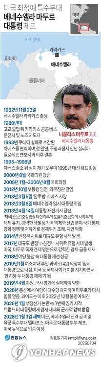 [그래픽] 미국 최정예 특수부대 베네수엘라 마두로 대통령 체포