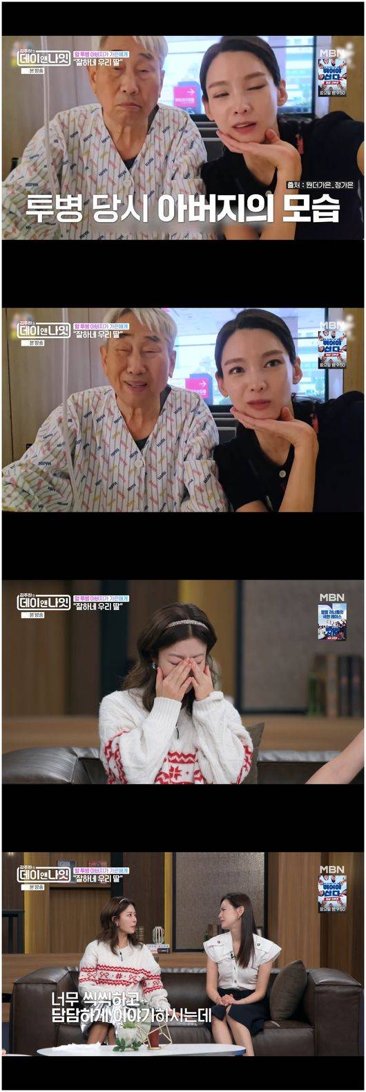 정가은은 이혼 후 편찮으신 아버지에 대해 말했다. 정가은은 아버지에 대한 사랑을 영상 편지로 전했다.이를 옆에서 듣던 이지현은 오열했다. 이지현은 “정가은이 정말 씩씩하고 담담하게 말씀하시더라. 저 같은 경우에는 아빠가 병원에 계신다. 너무 건강하시고 운동도 좋아하셨는데, 갑자기 허리 수술하시고 신장이 망가지셔서 투석을 하셨다. 연세가 있으셔서 쉽게 회복이 잘 안 된다”라고 말했다.
