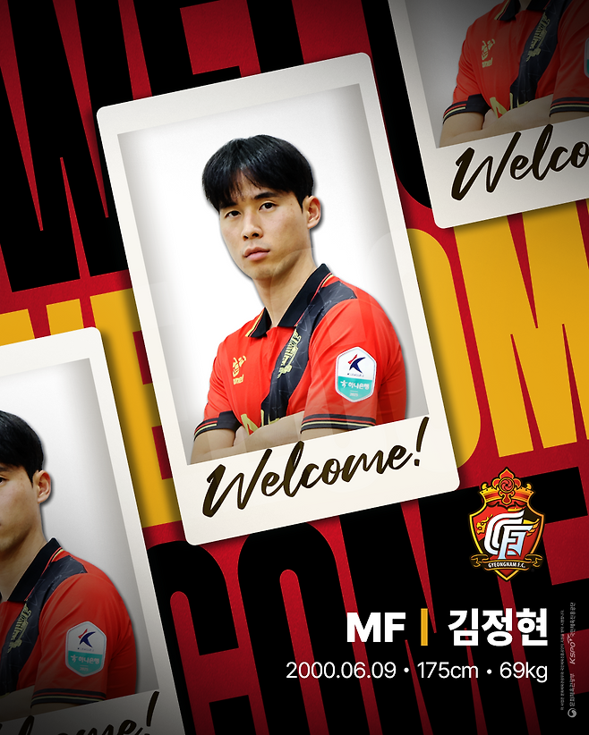 [골닷컴] 강동훈 기자 = 프로축구 K리그2(2부) 경남FC가 ‘중원의 에너자이저’ 김정현을 영입하며 중원에 활력과 기동력을 더했다. 아울러 ‘장신 수문장’ 이기현을 영입하며 뒷문도 한층 강화했다.