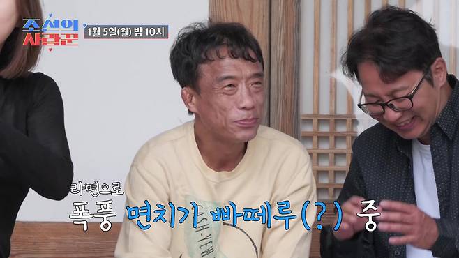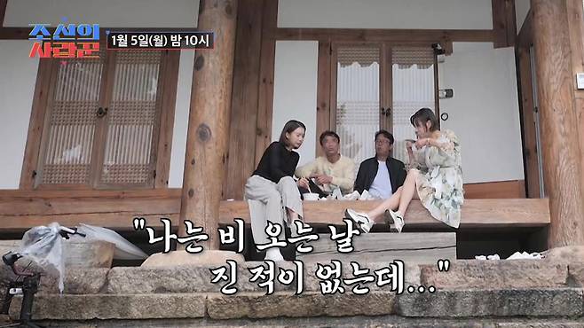 5일(월) 방송될 '조선의 사랑꾼'의 선공개 영상에서는 비 내리는 고즈넉한 한옥에서 심현섭, 그리고 세 명의 연애 코치들과 함께 조식으로 라면을 먹는 심권호가 포착된다. 특히 비 오는 날 라면을 폭풍 흡입하는 심권호의 먹방은, VCR을 지켜보던 MC들의 군침까지 삼키게 했다. 여성과의 영상 통화에서조차 지나치게 긴장했던 지난날과 달리, 심권호는 "나, 비 오는 날 무패야"라며 자신감 넘치는 모습으로 선수 시절의 무용담을 전했다. 이에 깜짝 놀란 '연애 코치' 지영은 "진짜 무패냐, 그럼 오늘 밖에 나가서 여자를 만나도 무패겠네?"라며 의미심장한 발언을 던졌다.