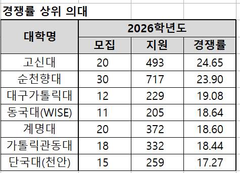 의대 지원자 5년새 최저…경쟁률 고신대 최고, 이대 최저 [입시톡톡]