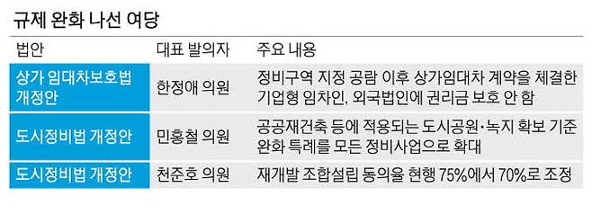 정부·여당이 도심 주택 공급 활성화를 위해 상가 알박기 방지법 등 규제 완화 법안을 잇달아 내고 있다.