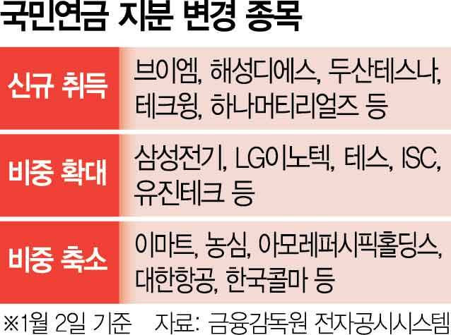 국민연금이 지난해 말 반도체 소부장(소재·부품·장비) 업종을 중심으로 신규 취득과 지분 확대에 적극 나서며 국내 주식 포트폴리오를 조정한 것으로 나타났다.