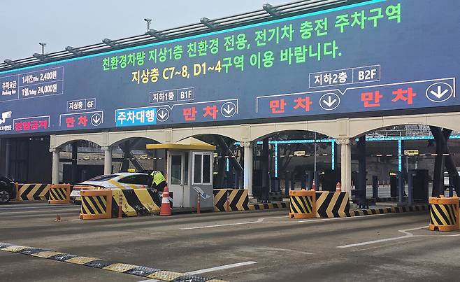 교통센터 지하 1~3층 단기주차 요금은 1시간당 2400원, 하루 2만4000원이다. 하지만 장기주차장은 하루 요금 9000원(시간당 1000원)이 적용되는 차량이 뒤섞여 극심한 혼잡이 빚어지고 있다.