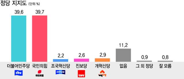 민주 39.6%, 국힘 39.7%