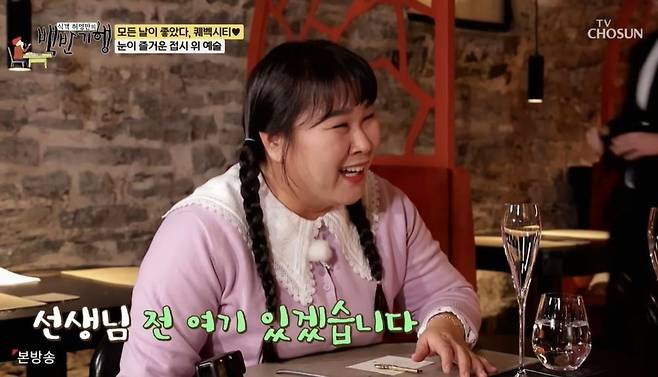이어 미스터리 레스토랑으로 향한 두 사람. 아름다운 공간에 감탄한 허영만은 "너무 아름다워서 이런 곳에서 일하면 월급을 안 받아도 될 것 같다"고 했지만, 김민경은 "에이. (그래도) 월급은 받아야 한다"며 웃었다.