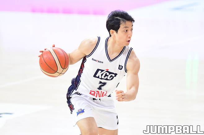 9점 2어시스트 1스틸. 2쿼터 9분 46초 동안 허훈이 기록한 수치다. KCC가 전반전, 정관장을 흔들며 앞서간(35-34) 힘이었다.