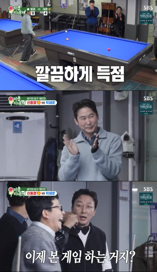 4일 오후 방송된 SBS '미운 우리 새끼'에서는 신동엽과 탁재훈의 당구 대결이 공개됐다.