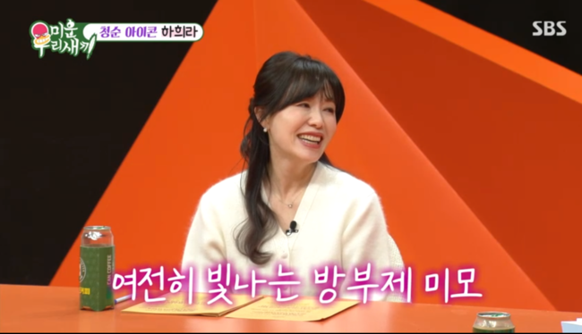 4일 오후 방송된 SBS '미운 우리 새끼'에서는 하희라가 50대라는 나이가 믿기지 않는 동안 미모로 등장했다.