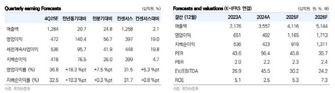 하현수 유안타증권 연구원은 “12월 31일 전망 공시를 통해 4분기 매출액 1조2839억원, 영업이익 4722억원을 기록할 것으로 발표했다”며 “시장 컨센서스(매출액 1조2579억원, 영업이익 3968억원) 대비 영업이익을 크게 상회하는 수준”이라고 밝혔다.