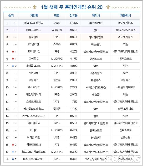 2026년 새해 첫 주 온라인 게임 순위에선 단판성 대전 게임이 선택받았다.