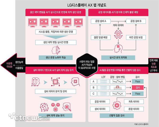 디스플레이는 일반적으로 미터 단위 대형 원장 유리 위에 복잡한 마이크로미터(㎛·100만분의 1m) 단위의 회로와 발광층 등을 겹겹이 구성해 만들어진다. OLED의 경우 한 달이 넘는 기간 동안 140개 이상의 공정을 거쳐 생산된다. 매 과정마다 재료의 배합이나 설비 조정 등이 생산에 큰 영향을 끼친다. 수만 가지 데이터가 조합돼 하나의 완성품이 탄생한다.