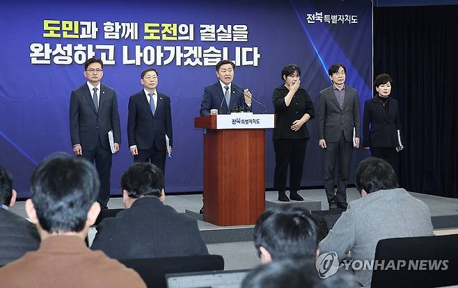 (전주=연합뉴스) 김관영 전북특별자치도지사가 5일 도청에서 신년 기자회견을 하고 있다. 2026.1.5 [전북특별자치도 제공. 재판매 및 DB 금지]