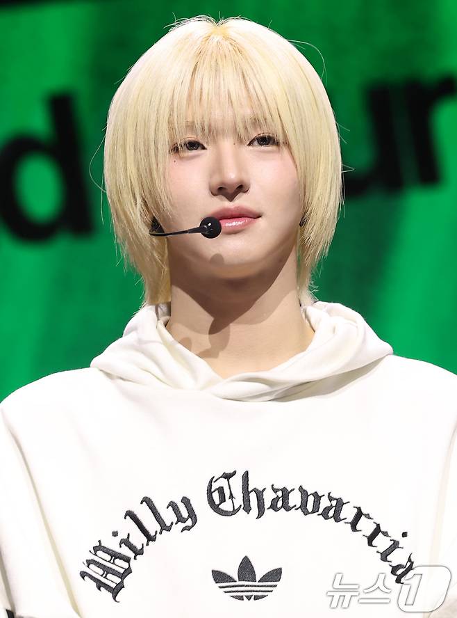 (서울=뉴스1) 권현진 기자 = 아이덴티티(idntt)의 이청명이 5일 서울 용산구 한남동 블루스퀘어에서 가진 쇼케이스에서 포즈를 취하고 있다. 2026.1.5/뉴스1