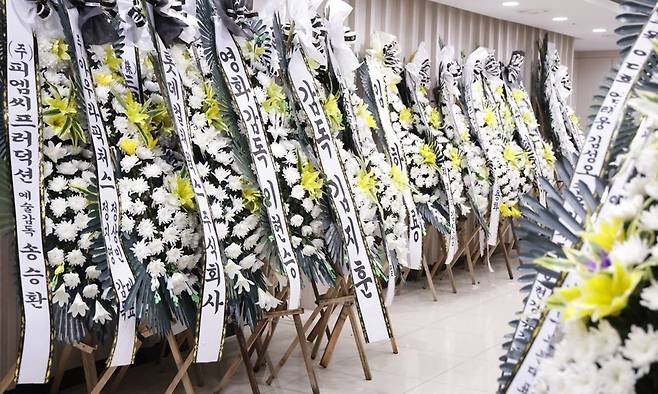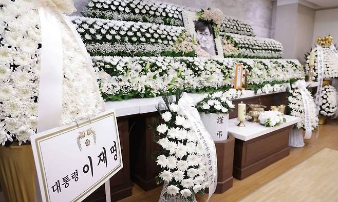 오랜 시간 사랑받았던 국민 배우의 비보가 전해지자 고인의 빈소에는 이재명 대통령과 문화체육관광부 최휘영 장관을 비롯한 연예계 및 각계 인사들의 근조화환이 이어지고 있다.