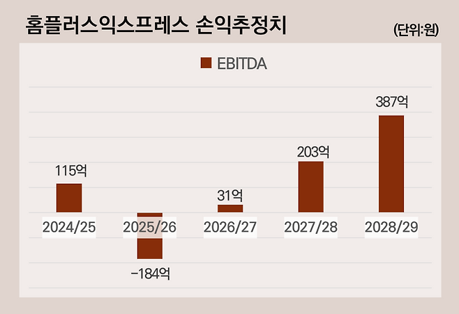 5일 이데일리 단독 취재 및 투자은행(IB) 업계에 따르면 홈플러스 회생계획안에 담긴 홈플러스익스프레스의 EBITDA(상각 전 영업이익)는 2025~2026년 사업연도에 약 184억원의 적자를 낼 것으로 추정된다. 조사위원인 삼일회계법인은 회사가 제출한 장부상 이익에서 회생 절차에 따른 특수 비용과 일시적 비용, 리스 회계기준 등을 반영해 익스프레스가 단기적으로 마이너스(-)를 기록할 것으로 전망했다.