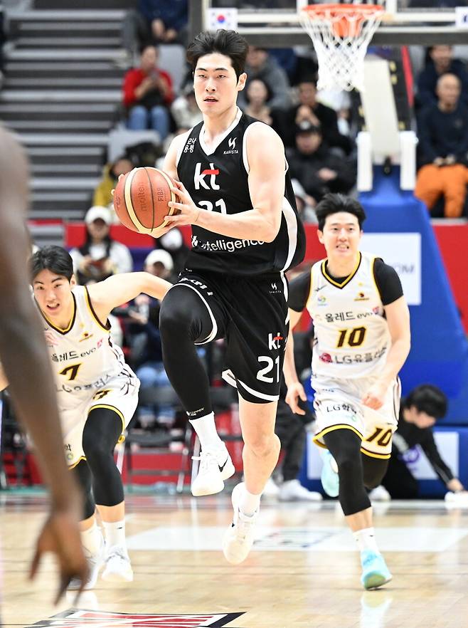 수원 KT는 4일 수원KT소닉붐아레나에서 열린 2025~2026 LG전자 프로농구 정규리그에서 창원 LG를 76-75로 꺾었다. 올 시즌 팀 최다인 4연승을 기록하면서 5할 승률도 지켜냈다. 동시에 LG전 3연패에서도 벗어났다.