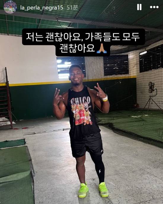 (엑스포츠뉴스 김근한 기자) 베네수엘라를 둘러싼 국제 정세가 급격히 악화된 가운데 한화 이글스 외국인 타자 요나단 페라자가 개인 사회관계망서비스(SNS)를 통해 자신과 가족이 모두 안전하다고 한국어로 직접 알렸다.