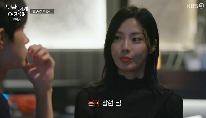 이날 무진의 밤 데이트 상대는 본희였다. 무진은 "낮에는 이야기 잘 했냐? 누구랑 이야기했냐"라며 본희의 낮 데이트 상대를 물었다. 본희는 "상현님이다. 따로 만난적은 없고 하우스에서만 얘기해봐서 얘기해 보고 싶었다고 하더라. (상현이) 되게 진지한데 오늘 이야기하길 잘했다고 생각했다"라고 솔직히 밝혔다.
