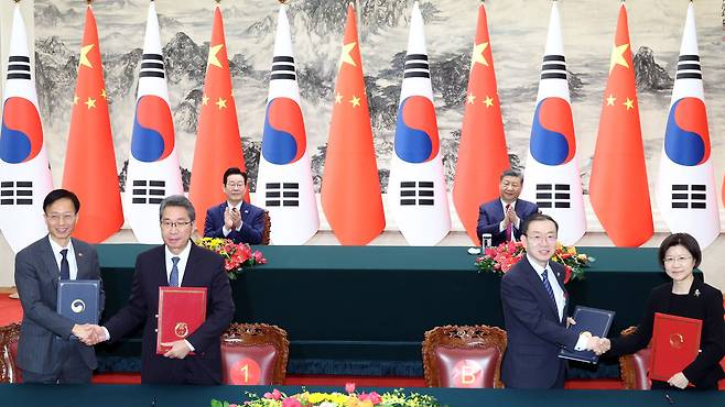 양국은 우선 산업 교류 확대를 모색하자는 취지로 '상무협력 대화 신설에 관한 MOU'를 체결해 산업통상부와 중국 상무부 사이의 정례 협의체를 구축하기로 했으며, 양국의 산업단지 간 투자 활성화를 위한 MOU도 함께 맺었습니다.