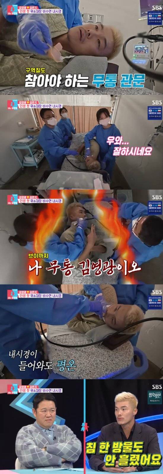 내시경을 진행하던 의료진도 "진짜 잘 받는다. 이걸 어떻게 참느냐"면서 '무통맨' 김영광을 인정했다. 이 모습을 지켜보던 서장훈 역시도 "우리나라에서 저렇게 내시경을 받을 수 있는 사람이 몇 명이나 있겠냐"고 놀라기도.