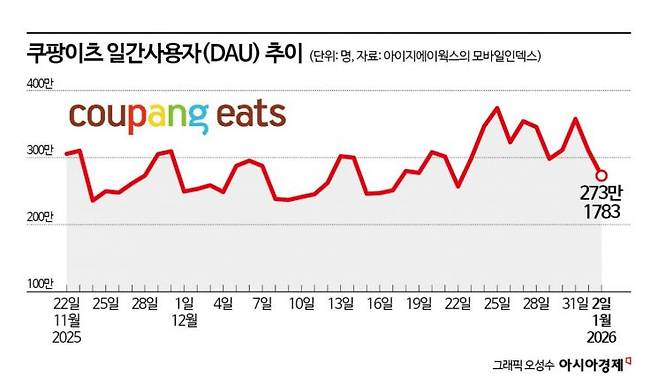 일간 사용자 추이를 봐도 쿠팡이츠는 11월 말부터 올해 초까지 200만~300만 명 선을 오가며 들쑥날쑥한 모습을 보였다. 성탄절인 12월 25일에는 최고치인 374만 명을 기록했다. 개인정보 유출과 이후 조성된 부정적인 여론보다는 '대목' 효과가 더 영향을 미쳤다는 분석이다. 쿠팡도 이 대목을 잡기 위한 마케팅을 지속해서 펼쳐왔다. 업계 관계자는 "연말은 배달 주문이 급증하는 시기인 만큼 '탈팡' 움직임이 있더라도 증가하는 수요에 상쇄됐을 수 있다"고 설명했다.