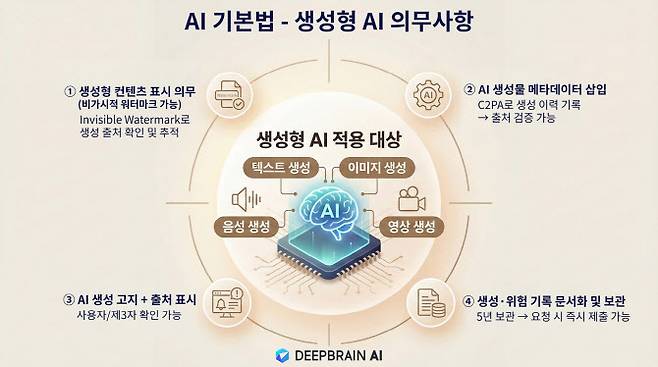 장세영 딥브레인AI 대표는 “생성형 AI를 활용하는 기업들이 콘텐츠 출처 관리와 투명성 확보를 선제적으로 준비해야 하는 환경”이라며 “제도 변화에 대응해 안전하고 신뢰할 수 있는 생성형 AI 활용을 돕는 기술적 방안을 지속 제공하겠다”고 말했다.