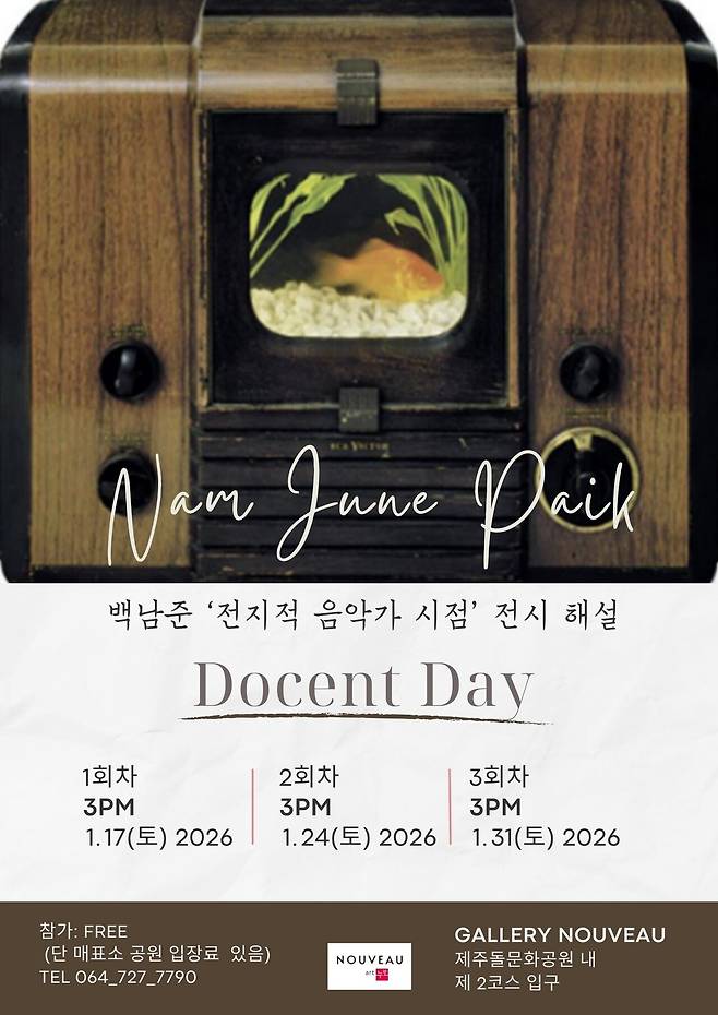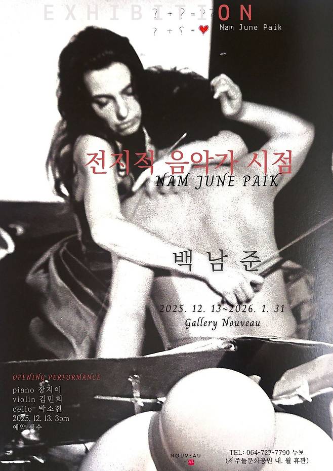 음악과 미술의 경계를 허문 예술가 백남준의 비디오아트를 음악가 시점으로 조망한 기획전이 열린다. 제주돌문화공원 갤러리 누보 '백남준: 전지적 음악가 시점' 전시다.