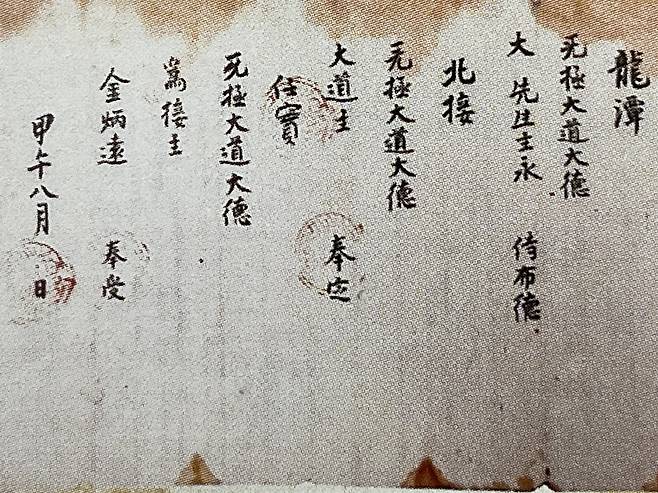 无極大道大德 大道主 奉定 (무극대도대덕 대도주 봉정)