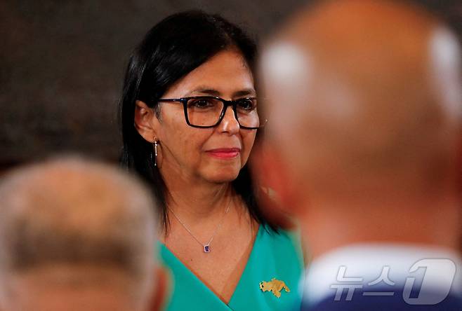 (카라카스 로이터=뉴스1) 김경민 기자 = 델시 로드리게스 베네수엘라 부통령이 5일(현지시간) 카라카스에 위치한 국회에서 열린 임시 대통령 취임 선서식에 참석했다. 2025.1.5