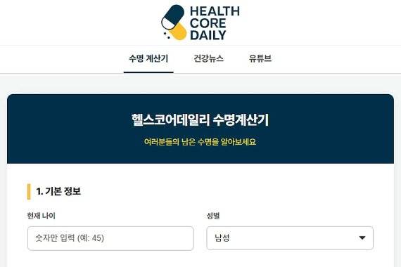 이러한 통계적 수치 속에서 개인이 자신의 건강 상태를 점검해 볼 수 있는 서비스가 등장해 눈길을 끈다. 최근 헬스코어데일리(healthcoredaily)는 통계 데이터를 기반으로 개인의 생활 습관 변수를 더해 예상 수명을 산출해 주는 ‘기대 수명 계산기’ 서비스를 공개했다. 이 서비스는 복잡한 절차 없이 성별, 나이, 체질량지수(BMI), 혈압 등 기초 신체 정보를 입력하면 자신의 예상 수명과 신체 노화 정도를 나타내는 ‘생체 나이’를 즉시 확인할 수 있는 것이 특징이다.