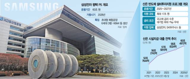산업은행이 저리 대출상품을 확대하고 있는 점도 삼성전자로서는 긍정적인 대목이다. 산업은행은 국민성장펀드 프로젝트를 후방 지원하기 위해 10조 원 규모의 저리 대출 프로그램을 신설하는 방안을 검토하고 있다. 이 상품은 국민성장펀드의 지원 대상으로 선정된 프로젝트에 자금 추가 대출을 지원하는 게 특징이다. 대출금리는 산금채 수준으로 1년 만기 산금채 금리는 2.73% 안팎이다. 재계의 한 관계자는 “AI 메모리 수요가 급증하고 있는 만큼 기업들이 투자 적기를 놓치지 않으려면 자금 공급이 원활하게 이뤄져야 한다”면서 “반도체 산업이 국가 간 대항전 양상을 띠고 있는 만큼 정책금융기관이 선제적으로 나설 필요가 있다”고 말했다. 금융계의 관계자는 “인공지능(AI)과 반도체는 천문학적인 자금 투자가 불가피하다”며 “은행권이 대출 지원을 통해 국내 산업을 전방위로 지원하고 있다”고 전했다. ▷본지 2025년 12월 12일자 1·3면 참조