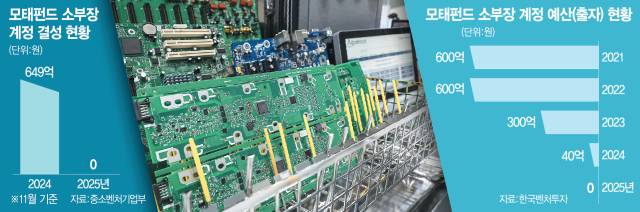 6일 중소벤처기업부의 ‘모태펀드 계정별·연도별 결성 현황’에 따르면 지난해 11월 기준 소부장 계정 결성 실적이 없는 것으로 집계됐다. 2024년 11월 기준 소부장 결성액은 649억 원이었다.