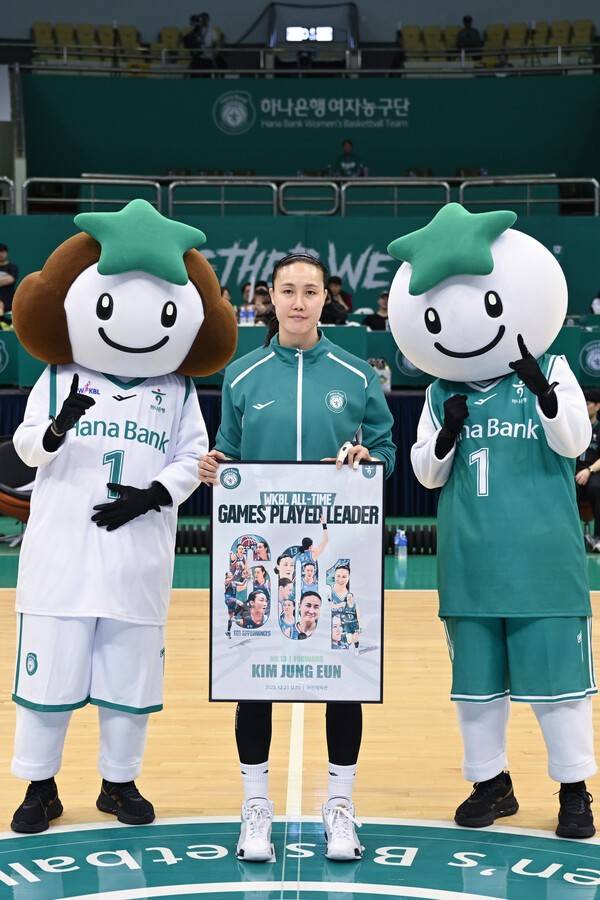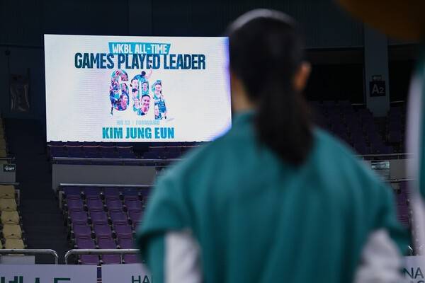 지난달 20일 김정은은 통산 600경기를 돌파한 뒤 21일 601경기째 경기를 소화했다. 601경기는 임영희 현 우리은행 코치의 기록을 넘어선 WKBL 역대 최다 출전 경기다. 또 김정은은 WKBL 역대 최다 득점 기록을 보유하는 등 '살아있는 전설'로서 굵직한 족적을 남겼다.