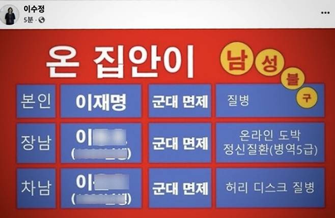 | ▲ 이 당협위원장은 현재 공직선거법 위반 및 허위사실 명예훼손 혐의로 법정에 서 있는 피고인 신분이다. 그는 지난 대선 당시 이재명 대통령과 그 아들들이 모두 '군 면제'를 받았다는 가짜뉴스를 자신의 페이스북에 게시해 지난해 11월 불구속 기소된 상태다. |
