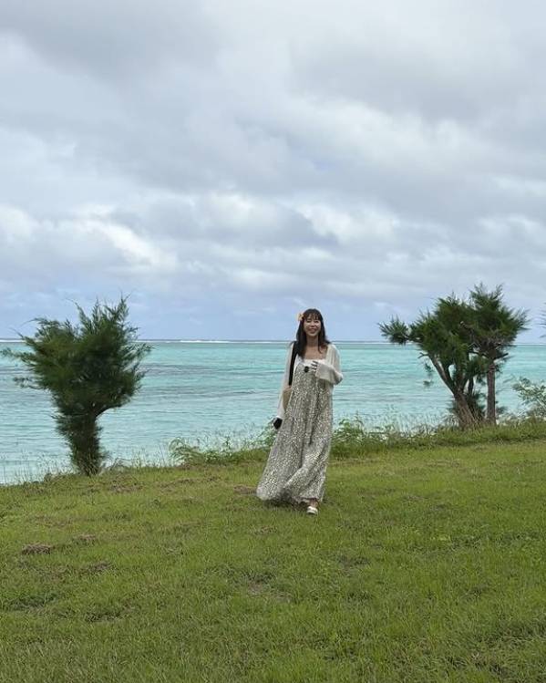 공개된 사진 속 신지는 여름 날씨의 휴양지를 즐기는 모습이다. 'SAIPAN'이라고 적힌 가방을 멘 신지는 플라워 패턴의 롱 원피스에 하얀 가디건을 레이어드하며 청초한 분위기의 바캉스 패션을 선보였다. 그는 꽃이 활짝 핀 정원에서 꽃향기를 즐기는가 하면, 에메랄드빛의 푸른 바다를 배경의 자연을 즐겨 눈길을 끈다.