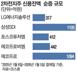 6일 코스콤에 따르면 결제일 기준으로 지난해 1월 6일부터 이달 5일까지 1년간 삼성SDI의 신용융자 잔액은 1105억원 순증했다. 일 년간의 삼성SDI 주가 상승률이 한 자릿수에 그쳤지만 개인투자자들이 적극적으로 빚투 잔액을 확대한 것이다. 같은 기간 국내 주요 배터리업체인 LG에너지솔루션의 신용융자 잔액도 317억원 늘어났다. 미국의 관세 부과와 전기차 보조금 폐지 등 각종 리스크가 이어지는 국면에서 에코프로(1094억원)와 포스코퓨처엠(412억원) 등 소재 업체들의 잔액도 큰 폭으로 올랐다.